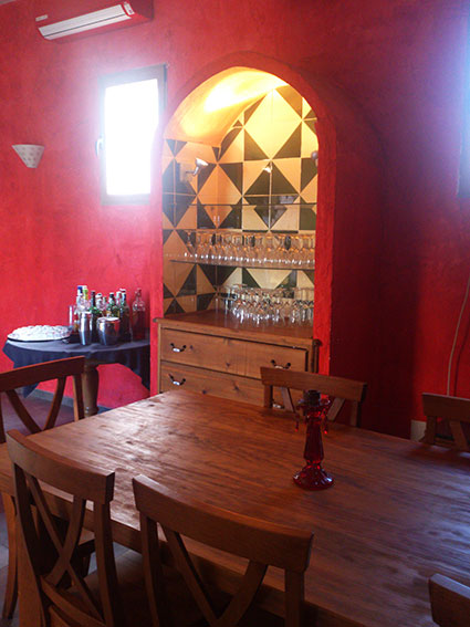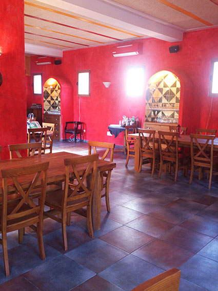 Se ha cubierto las paredes con dos capas también al igual que la fachada a la plana, (solo el techo se ha utilizado yeso) con el fin de poder utilizar pintura con pigmentos naturales buscando la calidez e intentando trasportar al comensal a lugares exóticos, donde se pueda conseguir un lugar encantador con magia.