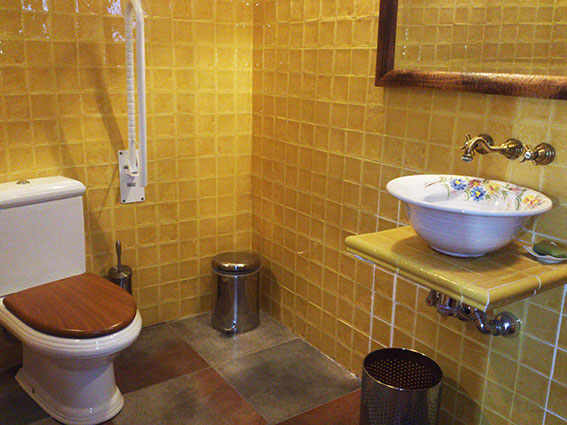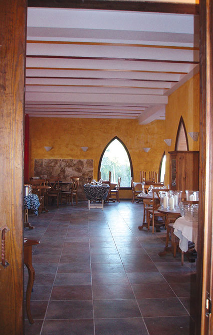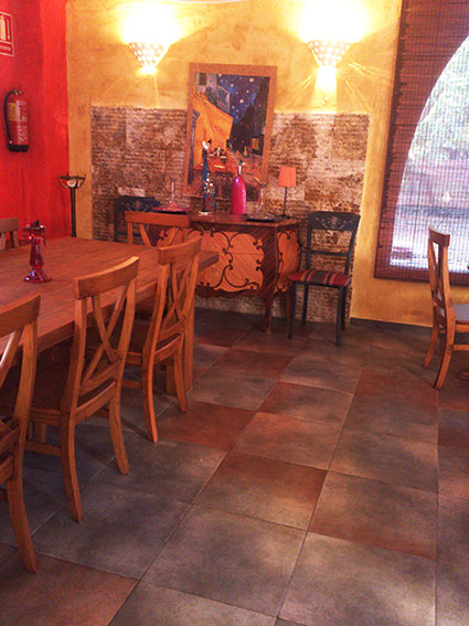 El restaurante se ha puesto una losa de Gres Catalán de color Musgo, que una vez más intenta hacer juego con el entorno de la huerta.